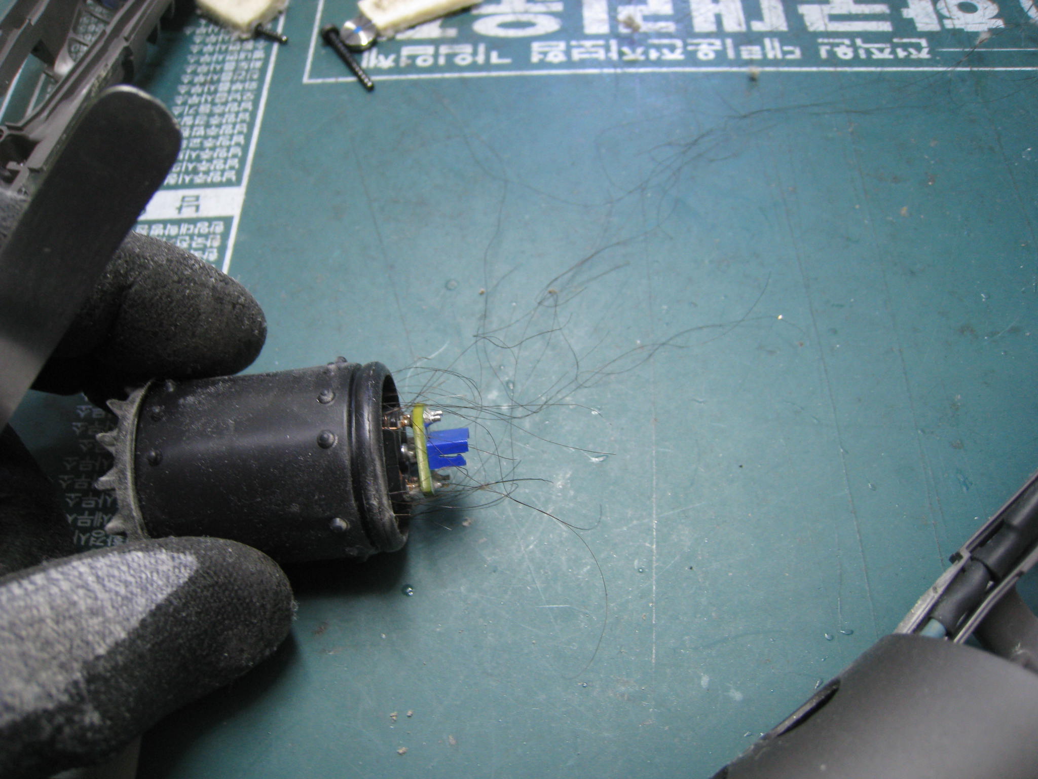 모터 안에 머리카락이 어마 어마하게 끼어 있습니다.